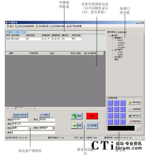 話務(wù)員可以通過點擊鼠標進行呼叫、應(yīng)答、轉(zhuǎn)接、掛機、強拆、強插等操作。
