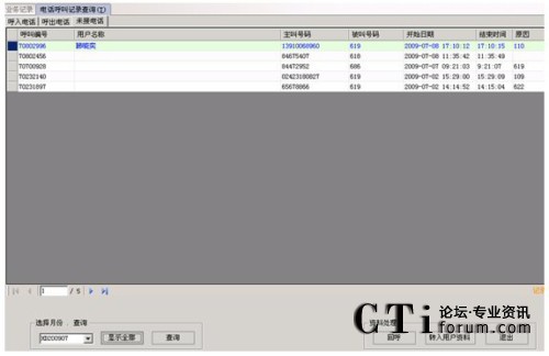 當(dāng)有電話來(lái)電時(shí),系統(tǒng)顯示來(lái)電號(hào)碼及來(lái)電人員的客戶資料信息;