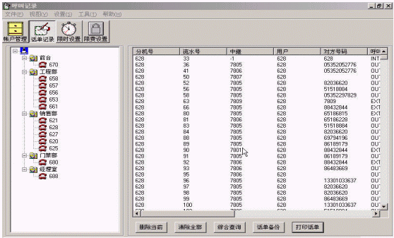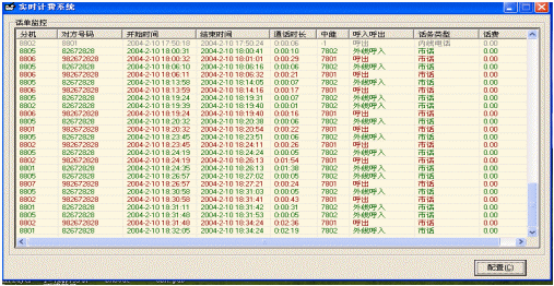 實(shí)時(shí)計(jì)費(fèi)系統(tǒng)不但對(duì)與外線接通的呼叫進(jìn)行記錄,同時(shí)對(duì)內(nèi)線之間的呼叫、未接通的呼叫進(jìn)行記錄,并且在發(fā)生轉(zhuǎn)接的情況下,分別對(duì)不同分機(jī)做呼叫記錄。