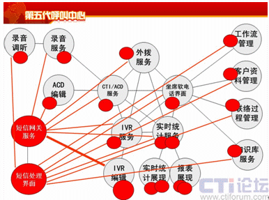 需要保存記錄的,需要做質(zhì)量管理的,大家需要把這個東西保存起來,以便于考核座席,這時候電話錄音的服務(wù)需要改動,座席質(zhì)量管理的界面需要改動,因?yàn)橐郧肮芾斫缑媸锹犱浺舻模F(xiàn)在是需要看文本了。接著客戶資料管理也是需要嗎?當(dāng)然需要了,來一個短信以后,盡量把客戶資料能夠屏幕彈出,降低我們的服務(wù)時間,需要改進(jìn)。知識庫需要改動嗎?需要,因?yàn)槲野l(fā)短信的時候,不可能每個字都敲進(jìn)去,需要從知識庫把這個信息拽出來,這時候需要知識庫的服務(wù)。工作流,通過短信也要進(jìn)行一些業(yè)務(wù)的處理。聯(lián)絡(luò)過程也需要管理。這時候戰(zhàn)略出來了,經(jīng)營者說了,我現(xiàn)在通過短信要做營銷了,我要外撥了,和外撥服務(wù)連接出來,還有經(jīng)營者的一些戰(zhàn)略,比如說對于一些比較高的客戶,優(yōu)先分配,降低等待時長。那么這個戰(zhàn)略還包括這些產(chǎn)品生命周期的管理,需要不同的服務(wù)方式,一樣也要通過編輯,策略可以自行調(diào)整。