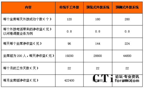 Hi-Dialer為不少呼叫中心企業(yè)帶來的前所未有的收益。我們可以進(jìn)行一個(gè)簡(jiǎn)單的實(shí)景測(cè)算,目前國(guó)內(nèi)典型的擁有預(yù)測(cè)式外呼的呼叫中心都有單純的呼入坐席,假設(shè)呼入坐席500席,預(yù)測(cè)式呼出坐席1000席,呼入和呼出坐席的呼叫中心系統(tǒng)分別獨(dú)立,如果是業(yè)務(wù)量飽和的狀態(tài)下,全部坐席是可以用的,但是在業(yè)務(wù)量不飽和的狀態(tài)下,想讓這1000坐席接聽呼入電話,卻辦不到。這就形成了一個(gè)巨大的漩渦,將企業(yè)的軟硬件成本、場(chǎng)地租金和人力資源無情的吞噬掉了。新的勞動(dòng)法又規(guī)定企業(yè)不得隨意裁人,那么這時(shí)候企業(yè)就會(huì)非常頭疼。這是一個(gè)典型的重復(fù)建設(shè)項(xiàng)目。