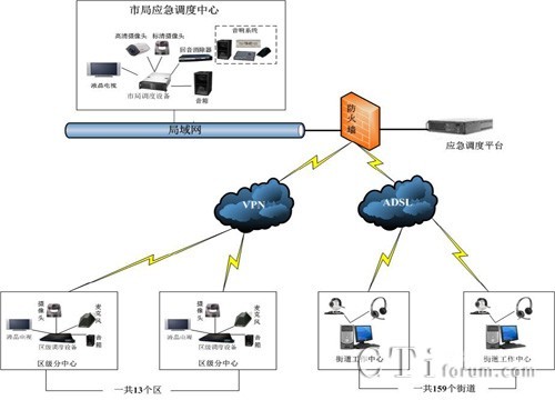 武漢市司法局視頻會議系統(tǒng)包括了1個主會場高清、13個區(qū)局分會場標(biāo)清和159個街道軟件視頻會議點(diǎn)。系統(tǒng)傳輸依托于武漢市司法局業(yè)務(wù)網(wǎng),網(wǎng)絡(luò)呈星型拓?fù)浣Y(jié)構(gòu),中心節(jié)點(diǎn)到各區(qū)局節(jié)點(diǎn)網(wǎng)絡(luò)帶寬為2M,中心節(jié)點(diǎn)到各街道所網(wǎng)絡(luò)為VPN方式通過ADSL撥號連接,全面支持全高清視頻會議,實(shí)現(xiàn)高清、標(biāo)清、硬件、軟件混合組網(wǎng)模式。整個系統(tǒng)基于業(yè)界最先進(jìn)的H.264 High Profile視頻協(xié)議和寬頻語音,最大還原審訊現(xiàn)場真實(shí)場景。同時系統(tǒng)還具備音視頻同步錄像、畫中畫疊加錄像、多策略光盤實(shí)時備份、本地訊問、遠(yuǎn)程指揮等功能,完美實(shí)現(xiàn)了審訊工作的數(shù)字化、標(biāo)準(zhǔn)化和網(wǎng)絡(luò)化建設(shè),有效地提高了偵查辦案、協(xié)查辦案的效率,加強(qiáng)了辦案、取證過程的真實(shí)性和有效性,增強(qiáng)審訊過程的監(jiān)督與檢查取證,維護(hù)司法公正。