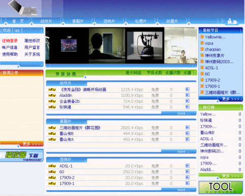 隨著互聯(lián)網(wǎng)在中國的普及和網(wǎng)絡基礎建設的完善,越來越多的人開始上網(wǎng),隨之而來的就是各種網(wǎng)絡服務的大行其道,我們就來看看最近很火的網(wǎng)絡視頻點播VOD。領導下命令,對目前視頻點播產(chǎn)品做一個評估,沒有辦法,只有照辦。既然要評論自然要找最好的來感受一下。南京遠古的Web VOD5.0。在技術上較為領先,根據(jù)南京遠古官方宣布,該系統(tǒng)可以達到1000并發(fā)。十分好奇,終于托人找到了體驗版本。