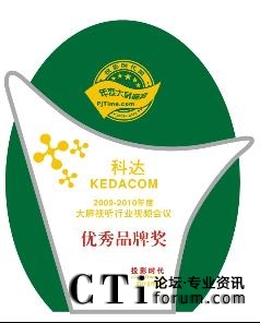 CTI論壇(ctiforum)2月3日消息(記者 張塵):今年1月,“2009——2010年度投影時(shí)代大屏盛典” 評(píng)選活動(dòng)在北京成功落幕,領(lǐng)先的視訊廠商科達(dá)(KEDACOM)憑借專業(yè)的視訊產(chǎn)品、解決方案以及15年卓越的客戶服務(wù)品質(zhì)毫無(wú)懸念的榮膺“遠(yuǎn)程視頻會(huì)議優(yōu)秀品牌”。