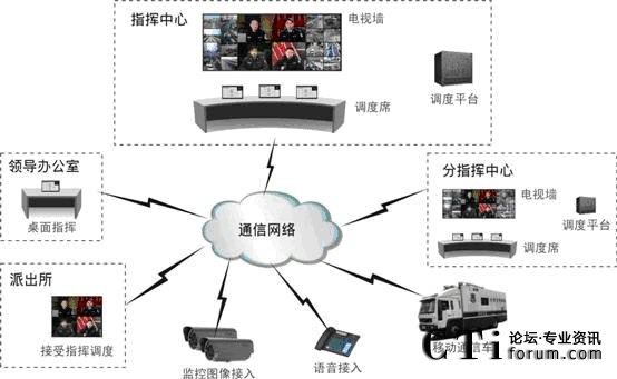 系統(tǒng)支持大型或中小型調(diào)度指揮中心部署,也支持在領(lǐng)導(dǎo)辦公室部署小型指揮點(diǎn);各個(gè)前端點(diǎn)可通過E1專線或以太網(wǎng)接入中心平臺(tái),也可通過衛(wèi)星、無(wú)線等方式支持移動(dòng)終端的接入。