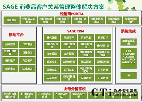 Sage CRM消費(fèi)品行業(yè)解決方案提供經(jīng)銷商使用的PORTAL系統(tǒng)、移動系統(tǒng)、內(nèi)部運(yùn)作系統(tǒng)及可以供我們經(jīng)營管理層使用的決策分析系統(tǒng),全面提高企業(yè)的快速反應(yīng)力及競爭力,為消費(fèi)品行業(yè)企業(yè)創(chuàng)造更大效益。