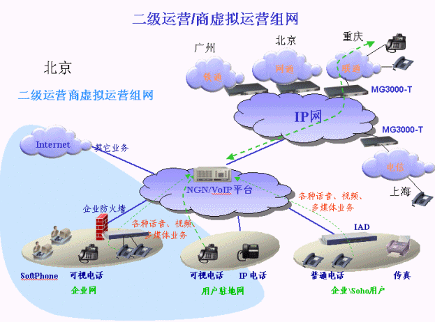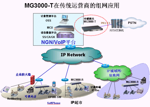 該產(chǎn)品是一款電信級產(chǎn)品,具有靈活的擴(kuò)展性和良好的系統(tǒng)安全可靠性,尤其是可以大面積組網(wǎng),可網(wǎng)管,可堆疊。目前已在中國電信、中國網(wǎng)通、中國移動、中國聯(lián)通、中國鐵通等主流運(yùn)營商和很多專網(wǎng)/虛擬運(yùn)營商使用,并跟目前網(wǎng)上使用的絕大部分平臺進(jìn)行過互通,性能良好。由于我司MG3000-T系列產(chǎn)品的高性價比,得到了客戶和合作伙伴的好評。它的主要應(yīng)用如下: