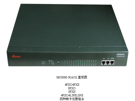 在介紹MG3000-R系列產(chǎn)品的典型應(yīng)用時,產(chǎn)品中心研發(fā)經(jīng)理介紹到:“MG3000-R適用于企業(yè)原有直線電話系統(tǒng)的VOIP改造、原有PBX電話系統(tǒng)的VOIP改造。與軟交換配合后可做中繼使用,也是企業(yè)異地分支機(jī)構(gòu)的最佳選擇。再有,在IP呼叫中心中,它還可以構(gòu)建呼叫中心的遠(yuǎn)端坐席。此外還有話務(wù)臺等應(yīng)用!