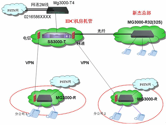 - 上海新杰總部全部采用R32(32S)的設(shè)備用點(diǎn)對點(diǎn)光纖連接到軟交換平臺上,如果斷網(wǎng),能夠有內(nèi)部自動交換的機(jī)制。