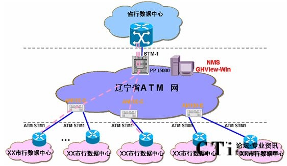 采用大唐高鴻獨立研發(fā)的電信級寬帶多業(yè)務(wù)接入復(fù)用交換機(jī)AM100-E設(shè)備,充分利用其體積小、ATM端口密度高、交換功能強(qiáng)大的特點,將各個市數(shù)據(jù)中心通過ATM方式接入到所屬區(qū)域的通信節(jié)點,由AM100-E設(shè)備實現(xiàn)ATM接入?yún)R聚,并通過ATM端口匯聚交換到中心點。