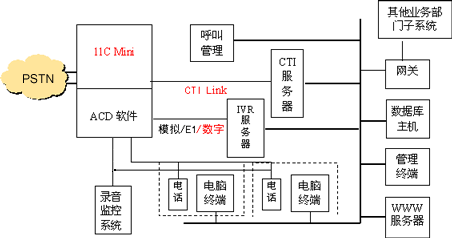 通過CTI Link M1D軟件,實(shí)現(xiàn)CTI服務(wù)器與11C Mini交換機(jī)之間進(jìn)行呼叫狀態(tài)傳遞和呼叫控制,支持北電ACD、CDN等先進(jìn)排隊(duì)技術(shù)。同時還為客戶端提供CTC