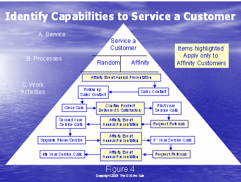 圖4中的全部圖片推翻了所需的服務(wù)客戶的行動(dòng)。這兩種方法提供了不同的過(guò)程以達(dá)到這個(gè)結(jié)果。在這個(gè)部分的底部,C. 工作行動(dòng),這些方格體現(xiàn)了頂端開(kāi)始的行動(dòng),和經(jīng)歷之前描述的獲得和保持客戶的過(guò)程。