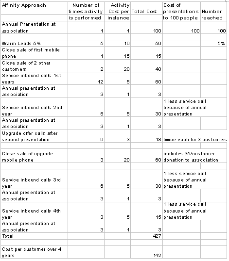 在使用密切關(guān)系法的情況下,成本不僅僅在1個(gè)新客戶上展開(kāi),而是3個(gè)。它與隨機(jī)法主要的不同是在一個(gè)協(xié)會(huì)中制造一個(gè)年度介紹事件而與市場(chǎng)銷(xiāo)售相協(xié)調(diào),它導(dǎo)致了: