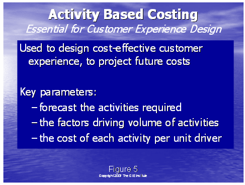 圖7說(shuō)明了管理組眼中的傳統(tǒng)的成本可以怎樣分配到各行動(dòng)和成本對(duì)象上去,以至于最后收入的真實(shí)成本可以在不同的客戶群上得以體現(xiàn)。下面的圖表顯示了以地理劃分的客戶群,但是很可能分配成本對(duì)象到其它的客戶群方案里,如人口統(tǒng)計(jì)學(xué)群體,銷(xiāo)售渠道(零售,互聯(lián)網(wǎng),代理)或其它的設(shè)計(jì)客戶經(jīng)驗(yàn)的有用的種類(lèi)中。
