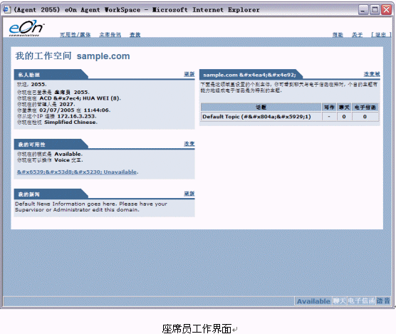用戶在第一次登陸時,在IE的地址欄中正確鍵入WorkSpace的IP地址便可以進(jìn)入WorkSpace的歡迎頁面。在該頁面上顯示有座席員工作空間(Agent