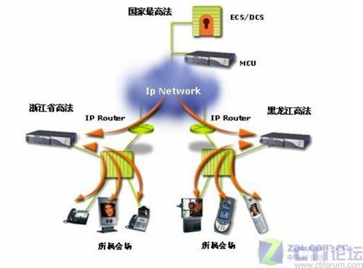 浙江省高等法院的應(yīng)用只是一個縮影,據(jù)了解,在全國法院系統(tǒng)在最高人民法院的示范作用下,各省級高等法院已經(jīng)紛紛應(yīng)用RADVISION視頻會議系統(tǒng),全面構(gòu)造省級法院到地(市)級法院的二級檢察院視頻會議網(wǎng)絡(luò)。目前全國已經(jīng)有22個省成功建造了省級法院RADVISION MCU視頻會議交互平臺,組成了由24臺RADVISION MCU實現(xiàn)的最高法院-22個省級法院-地(市)法院的三級視頻會議網(wǎng)絡(luò)。RADVISION建設(shè)的視頻會議系統(tǒng),既可以實現(xiàn)每個省單獨同時或分時靈活組建省—地(市)兩級視頻會議,也可以召開最高法院—22個省級法院—地(市)法院的3級視頻會議,并實現(xiàn)了最高法院對地(市)法院視頻會議終端的直接控制和管理。