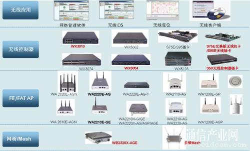 H3C具有FIT AP/FAT AP全系列無線產品。高端無線控制器產品WX6103,是業(yè)界第一款支持萬兆的、采用多核處理器的產品,單個控制板可以提供高達640個AP的接入、管理能力。WX3024無線控制器,集成24個交換口,同時支持POE+以太網供電功能。H3C同時還提供插卡形式的控制器,配合S9500、S7500系列交換機使用,具備更高的系統(tǒng)容量、性能及可靠性。