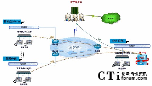 在香港和美國(guó)的分部,在今后需要統(tǒng)一的時(shí)候,也可通過(guò)小型IPPBX、FXS語(yǔ)音網(wǎng)關(guān)、或者IP話(huà)機(jī)與總部進(jìn)行互聯(lián)互通,做到異地完全虛擬統(tǒng)一,內(nèi)部互通免費(fèi),并在統(tǒng)一的信息管理系統(tǒng)中提高一體化辦公的效率。