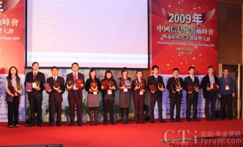 CTI論壇(ctiforum)12月15日消息(記者 張塵):12月10日,“2009中國信息化領(lǐng)袖峰會暨商用軟件評選頒獎大會”在上海東錦江索菲特大酒店隆重召開。此次會議以軟件行業(yè)協(xié)會為指導(dǎo)單位,由暢享網(wǎng)主辦,AMT集團(tuán)及德賽網(wǎng)協(xié)辦,并得到上海浦東軟件園的特別支持,通過歷時三個多月的調(diào)查研究和評選,結(jié)果于當(dāng)日揭曉。