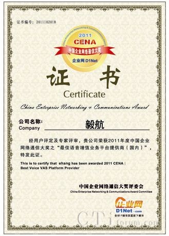 毅航通信榮獲”中國企業(yè)網(wǎng)絡(luò)通信大獎“