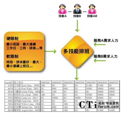 呼叫中心在班表公告執(zhí)行時,尚有許多現場管理與人員調度的動作需要進行,在實施人資優(yōu)化軟件之后,這些管理動作都有數字依據,并且可以作決策支持: