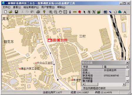 好易通三臺合一指揮調(diào)度警用地理信息子系統(tǒng)是好易通三臺合一指揮調(diào)度系統(tǒng)的一個重要組成部分,主要參考《警用地理信息系統(tǒng)建設(shè)規(guī)范》以及公安部《縣、市級公安機(jī)關(guān)"三臺合一"接處警系統(tǒng)技術(shù)規(guī)范》設(shè)計,基于MapInfo平臺開發(fā),接處警人員可運(yùn)用該子系統(tǒng)對案發(fā)地點(diǎn)進(jìn)行多中定位(模糊定位、輔助定位),多種查詢及多種調(diào)度。