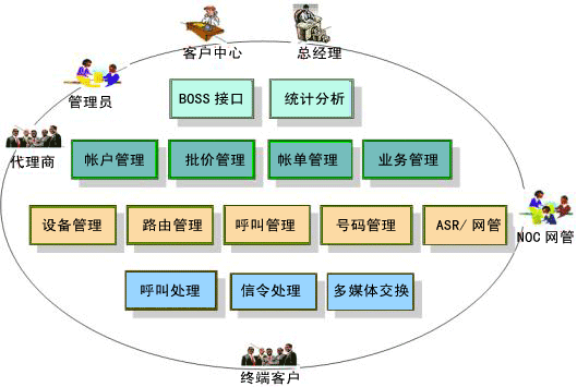 | 呼叫處理 | 設(shè)計(jì)原則: 處理接受終端用戶的呼叫請(qǐng)求。 代理向policy請(qǐng)求呼叫認(rèn)證系統(tǒng) 中每一個(gè)呼叫,負(fù)責(zé)上報(bào)給policy,并接受policy的指示。 功能: 設(shè)備管理:包括:設(shè)備信息管理、設(shè)備號(hào)碼管理、用戶的路由策略決定,統(tǒng)計(jì)分析、綜合查詢等等。 路由管理:為管理者全方位地管理系統(tǒng)擁有的路由資源,并對(duì)這些資源進(jìn)行開發(fā)提供決策支持。如為不同的客戶不同的要求,提供最適合的路由組合。 呼叫管理:監(jiān)控系統(tǒng)現(xiàn)在正在進(jìn)行的通話,讓管理者實(shí)時(shí)了解系統(tǒng)當(dāng)前的業(yè)務(wù)狀況。 ASR統(tǒng)計(jì):讓管理員實(shí)時(shí)了解系統(tǒng)的近一段時(shí)間的各類用戶,各路由的接通率,平均通話時(shí)長(zhǎng)等。 網(wǎng)管:提供管理員管理每個(gè)設(shè)備的信息,并提供遠(yuǎn)程登錄管理到Internet上任何注冊(cè)到系統(tǒng)上的設(shè)備。 帳戶管理:管理系統(tǒng)中的每一個(gè)帳戶,支持多級(jí)的帳戶管理。上一級(jí)可以依據(jù)權(quán)限對(duì)下一級(jí)進(jìn)行管理。 批價(jià)管理:為各種帳戶提供與其相適應(yīng)的價(jià)格策略,以最低的成本最有效地激勵(lì)客戶。如定制打折,套餐等不同的定價(jià)策略. 帳單管理:為每個(gè)帳戶提供定時(shí)準(zhǔn)確帳單收據(jù)?缮 Word、Excel、txt 等不同格式的帳單明細(xì)報(bào)表和統(tǒng)計(jì)報(bào)表。 業(yè)務(wù)管理:為每個(gè)用戶提供各種不同用戶所需要的業(yè)務(wù),并能快速的提供新的業(yè)務(wù)。如呼叫轉(zhuǎn)移,呼叫等待等業(yè)務(wù)。 |