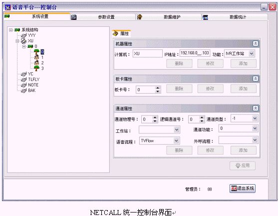 NETCALL呼叫中心平臺產(chǎn)品包括:CTIServer語音服務(wù)器(包括ACD智能路由分配、IVRCompiler流程解釋系統(tǒng));IVRFlowMaker業(yè)務(wù)流程生成器;AllContral統(tǒng)一控制臺;VocMonitor實時監(jiān)控;Report統(tǒng)計報表系統(tǒng); NETLOG全程錄音管理;SoftPhone座席應(yīng)用工具。