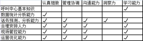 綜上所述,排班師的個人能力對呼叫中心的運(yùn)營有著至關(guān)重要的意義。那么,為了達(dá)到這一目標(biāo),對排班師有什么樣的能力要求?在實(shí)際工作中如何應(yīng)用這些能力?在此,結(jié)合筆者在運(yùn)營管理及排班項(xiàng)目實(shí)施中的一些體會,對排班師需具備的能力進(jìn)行分析。