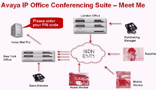 無(wú)需額外的會(huì)議設(shè)備 -你只需有一臺(tái) IP Office系統(tǒng)和外部以數(shù)字中繼/ VoIP方式連接 (如果有 PIN 密碼驗(yàn)證和會(huì)議語(yǔ)音提示則需要 Voicemail Pro 支持)