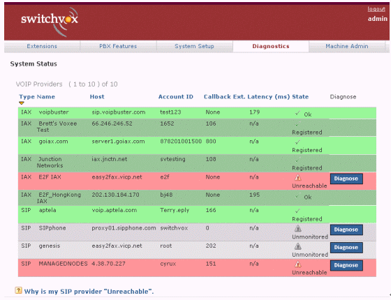 圖2中綠色表示正常,紅色表示出現(xiàn)問題,白色表示從沒有接通過。如果你按診斷(Diagnose),系統(tǒng)便會通過自動測試,告訴你問題出自那一段落。如果需要對每一個的詳細(xì)解析,可以按底部Why這個標(biāo)題,找尋答案。類似的終端、話機等配置、硬件診斷等,也有非常明撩的界面與解決問題的辦法。