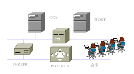 智能化網(wǎng)絡(luò)(Intelligent Network)、排隊(duì)機(jī)(ACD)、計(jì)算機(jī)語音集成(CTI)、自動語音/傳真響應(yīng)設(shè)備(IVR/IFR)、業(yè)務(wù)系統(tǒng)主機(jī)HOST、座席(Agent)、信息板(Wall