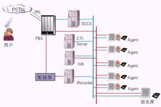 其中交換機(jī)采用Meridian,軟件平臺(tái)采用浩豐時(shí)代的系列解決方案:自動(dòng)語(yǔ)音應(yīng)答系統(tǒng)IVR2000®,CTI平臺(tái)VOM®,坐席應(yīng)用系統(tǒng)iAgent®和數(shù)字錄音監(jiān)聽系統(tǒng)iRecorder?。該系統(tǒng)既可以利用強(qiáng)大的呼入排隊(duì)功能處理客戶請(qǐng)求,也可以利用呼出功能為客戶提供主動(dòng)服務(wù)。
