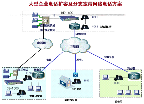 部署一臺(tái)Simplicity™ SE-1000,與原PBX連接,并通過IP網(wǎng)絡(luò)與總部的Simplicity™