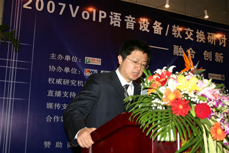2007年4月23日,“2007VoIP語(yǔ)音設(shè)備/軟交換研討會(huì)暨展示”在北京成功舉行,研討會(huì)以“融合創(chuàng)新應(yīng)用”為主題,來(lái)自于信息產(chǎn)業(yè)部通信科技委委員侯自強(qiáng)、中國(guó)電信集團(tuán)北京研究院副院長(zhǎng)趙慧玲、知名學(xué)者北京郵電大學(xué)闞凱力教授以及互聯(lián)網(wǎng)知名經(jīng)濟(jì)學(xué)家楊冰之都到會(huì)并做了精彩的演講,各VoIP相關(guān)廠商的代表也就產(chǎn)業(yè)內(nèi)相關(guān)問(wèn)題一起探討,尋找走出行業(yè)內(nèi)冬天的有效辦法。通信世界網(wǎng)對(duì)本次論壇做了現(xiàn)場(chǎng)報(bào)道。