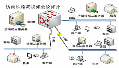 濟南鐵路局規(guī)模龐大,機構(gòu)復(fù)雜,由于鐵路的特殊性,一個部門或機構(gòu)往往分布在鐵路沿線的數(shù)十個站段。因此,溝通和會議的模式也是多種多樣的,會議使用單位較多而且頻繁,這就對網(wǎng)絡(luò)視頻會議系統(tǒng)提出了很高的要求,即能滿足當(dāng)?shù)氐臅h,又要能夠滿足跨區(qū)域的會議。