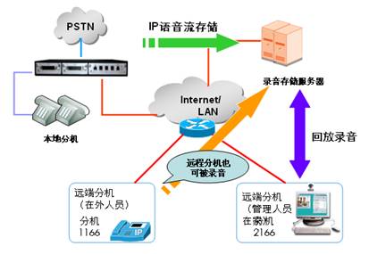 迅時通信采用數(shù)字化集成的技術,在OM系列IPPBX上直接融入了電話錄音功能。無論是在模擬分機或IP分機上通話,還是模擬外線或與IP外線的通話,OM通過其強大的語音處理器直接生成數(shù)字化的語音文件,并通過網(wǎng)絡將錄音文件保存在用戶指定的服務器上。如圖所示。