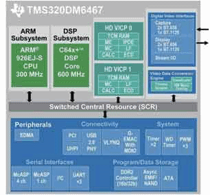 圖3:基于達芬奇技術(shù)的TMS320DM6467數(shù)字媒體處理器方框圖