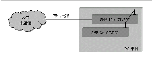 采用SHF系列傳真資源卡,可使您的語音系統(tǒng)增添傳真存貯、傳發(fā)、自動傳真回復(fù)等附加功能。只要采用卡間總線(ISA卡采用ST-BUS,PCI卡采用CT-BUS H.100),將語音卡與傳真資源卡相連,即可使每一個語音通道具有傳真功能。典型系統(tǒng)結(jié)構(gòu)如下: