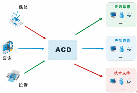 我們目前接入的媒體有很多,不再是傳統(tǒng)的單一電話接入方式,還包括網(wǎng)絡(luò)呼入、E-mail呼入,短信、留言等,所有的媒體接入都通過統(tǒng)一的排隊(duì)路由,以最優(yōu)化的策略分配給最適合的座席人員;并且,不同的媒體類型具有不同的優(yōu)先級(jí),ACD(自動(dòng)話務(wù)分配)根據(jù)優(yōu)先級(jí)和設(shè)定的排隊(duì)算法,自動(dòng)實(shí)現(xiàn)媒體的統(tǒng)一智能路由。
