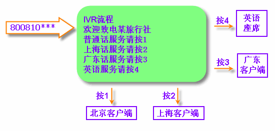 當客戶撥打電話進入MVB2000系統(tǒng)平臺的呼叫中心。通過IVR導航,可隨意打到各地的客戶端,再通過客戶端進行更加細致的分類。并且,每個客戶端都可以互相轉(zhuǎn)接。IVR流程可以無限下拉菜單。