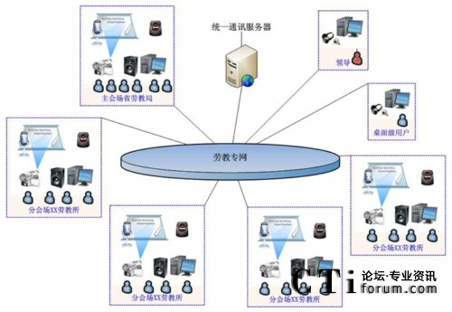 湖南省勞教局是司法廳管理的從事管理、教育、改造勞動教養(yǎng)人員的行政機構,也是省勞動教養(yǎng)管理委員會的常設辦事機構。其下屬管理有20多個下屬機構,分布于湖南省各個地市縣,以前進行全局會議時,所有的人員都需要到長沙市來進行開會,管理起來很不方便,同時差旅成本也比較高,同時局里經常需要對下面的工作人員進行業(yè)務方面的培訓,F(xiàn)客戶需要在他們的勞教專網上部署一套視頻會議系統(tǒng)來進行管理和培訓。