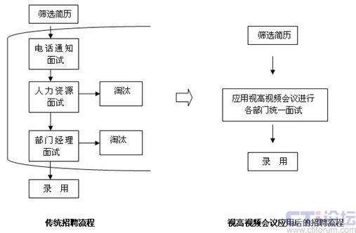 從上圖不難看出,通過應(yīng)用視高(Seegle)視頻會議系統(tǒng)進(jìn)行招聘,能大大縮短流程和周期,免除了求職者一次次的來回奔波,方便異地進(jìn)行面試。企業(yè)不僅可以在當(dāng)?shù)卣衅,更可以將招聘延伸到全國,甚至世界?br />
