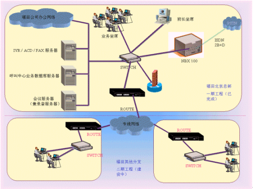 2. 隨著福田企業(yè)的發(fā)展,福田面臨的用戶(hù)群也日趨龐大。為了更好地為客戶(hù)服務(wù),同時(shí)也為了提高企業(yè)的整體形象,福田公司準(zhǔn)備建立客戶(hù)服務(wù)呼叫中心。首先在北京總部設(shè)立集中式的人工坐席,待各地分公司和總部之間的數(shù)據(jù)網(wǎng)絡(luò)建成后還要在各地分公司建立分布式的人工坐席。