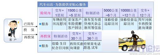 根據(jù)詳細(xì)的客戶或交易信息(如生日、性別、愛好、購車記錄、投保記錄等)主動(dòng)與客戶通過電話、短信等方式,進(jìn)行客戶回訪、投保到期再保提醒、生日祝福、節(jié)日問候、再保后的關(guān)懷等服務(wù),與客戶建立良好的長(zhǎng)期關(guān)系。