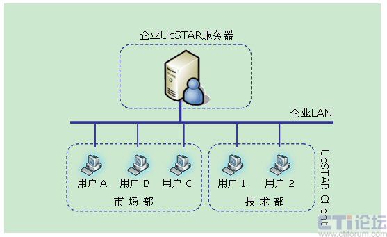 UcSTAR:Unified Communication Star,是擎旗技術研發(fā)的統(tǒng)一通信平臺,它為企業(yè)提供多種通訊手段(企業(yè)即時通信、視頻、語音、郵件、短信、電話、MSN/QQ互通等),并可融合企業(yè)的各種應用系統(tǒng)(OA、ERP、CRM、網(wǎng)站、電子商務系統(tǒng)等);將企業(yè)對外溝通、銷售和服務、對內溝通和協(xié)作無縫整合;輕松實現(xiàn)無地域/時間限制的,可管理、可控制、可擴展的,集內外部溝通、服務和銷售一體化的統(tǒng)一工作平臺。此外,它也可被分離應用為企業(yè)IM及實時協(xié)作系統(tǒng)、多媒體呼叫中心系統(tǒng)、專業(yè)級的IP視頻會議系統(tǒng)等。