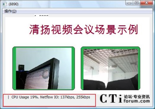 圖像的連續(xù)性,清揚(yáng)視頻會議提供了修改圖像幀速的功能,這使用戶能根據(jù)自己的帶寬情況來調(diào)整幀速,如果對一路視頻能提供略大于200kbps的充分傳輸,那么圖像的流暢性是毫無問題的。很多用戶在防火墻上作了很窄的流量限制,也經(jīng)常造成使用的不順利。