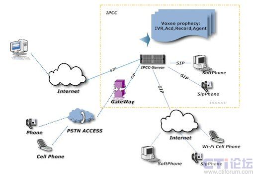 平臺特點   Voxeo 的基于統(tǒng)一通信類型的IPCC 一個主要特點就是能夠將呼叫中心技術集中部署在一個單一系統(tǒng)架構上,由于是基于互聯(lián)網標準SIP協(xié)議,所以可以被多個地理位置的機構共享,實現(xiàn)遠端坐席的分布式架構,這一點相信比起傳統(tǒng)呼叫中心來說更具吸引力,將極大地降低購置、實施和總體的成本。