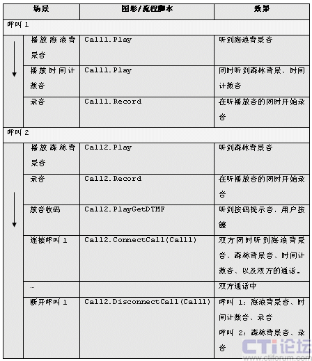 假設(shè):2個(gè)呼叫分別作自己的放音和錄音,2個(gè)呼叫連接后通話,然后連接取消。