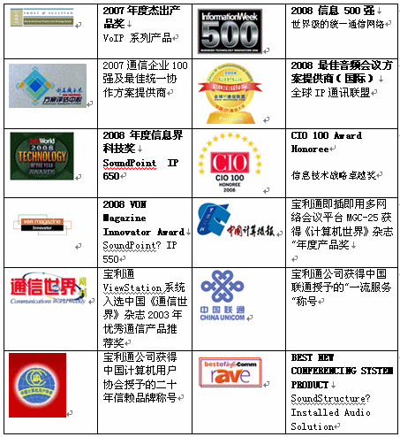 的產(chǎn)品一直在質(zhì)量和易于使用性方面享有盛譽,下面是Polycom音頻產(chǎn)品獲得的部分獎項。